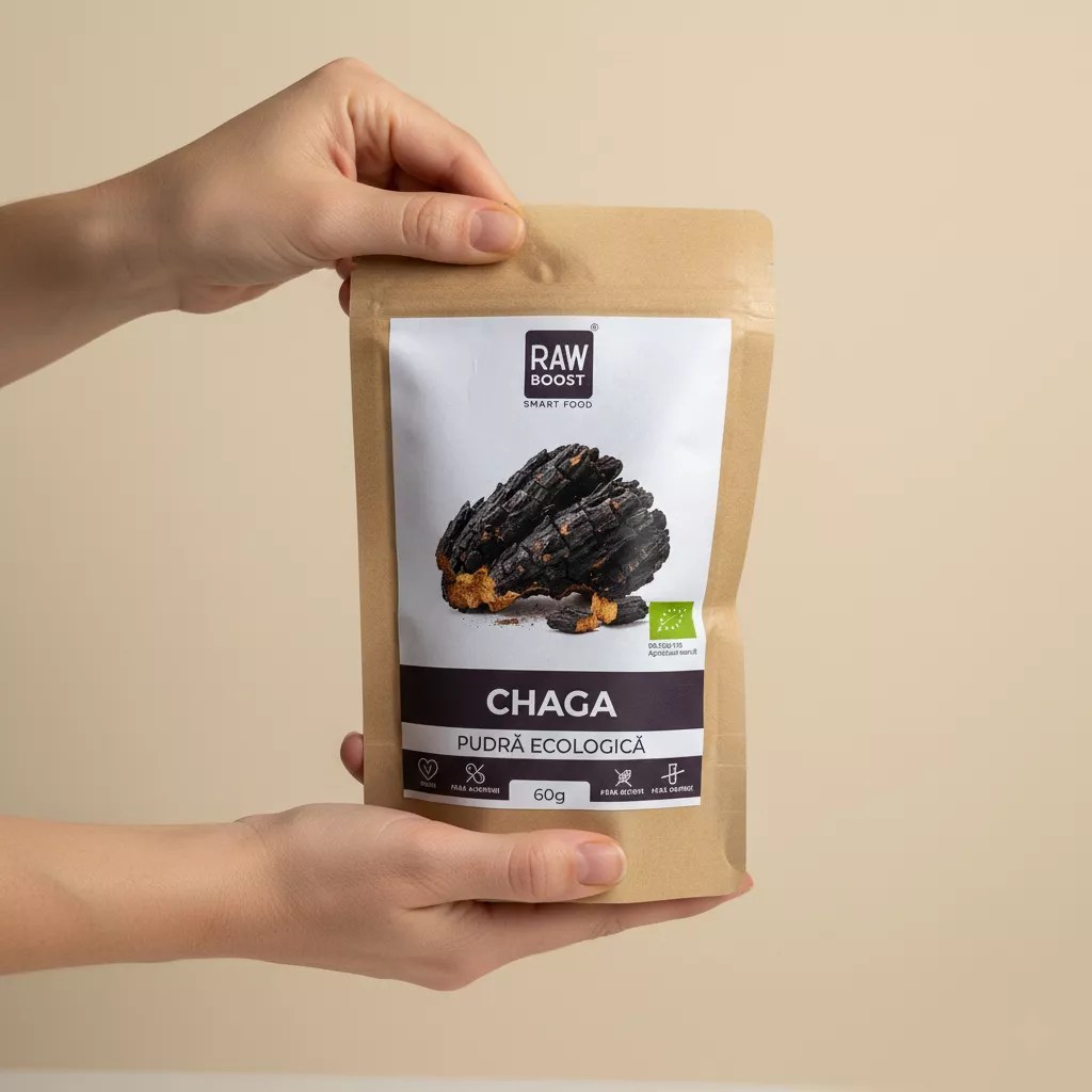 Chaga Pudră ECO - Puternic Antioxidant și Imunomodulator Natural, 60g | Rawboost