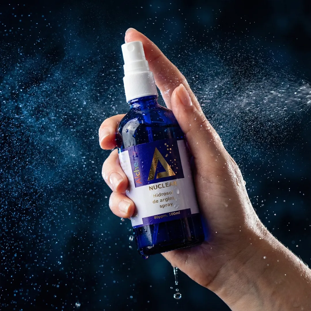Pentru necesitati care pot surveni oricand, Nuclear va ofera puterea terapeutica a hidrosolului de argint intr-un flacon confortabil. Puteti pulveriza la nevoie germenii care incearca sa va cucereasca ambientul, sau pe dumneavoastra.