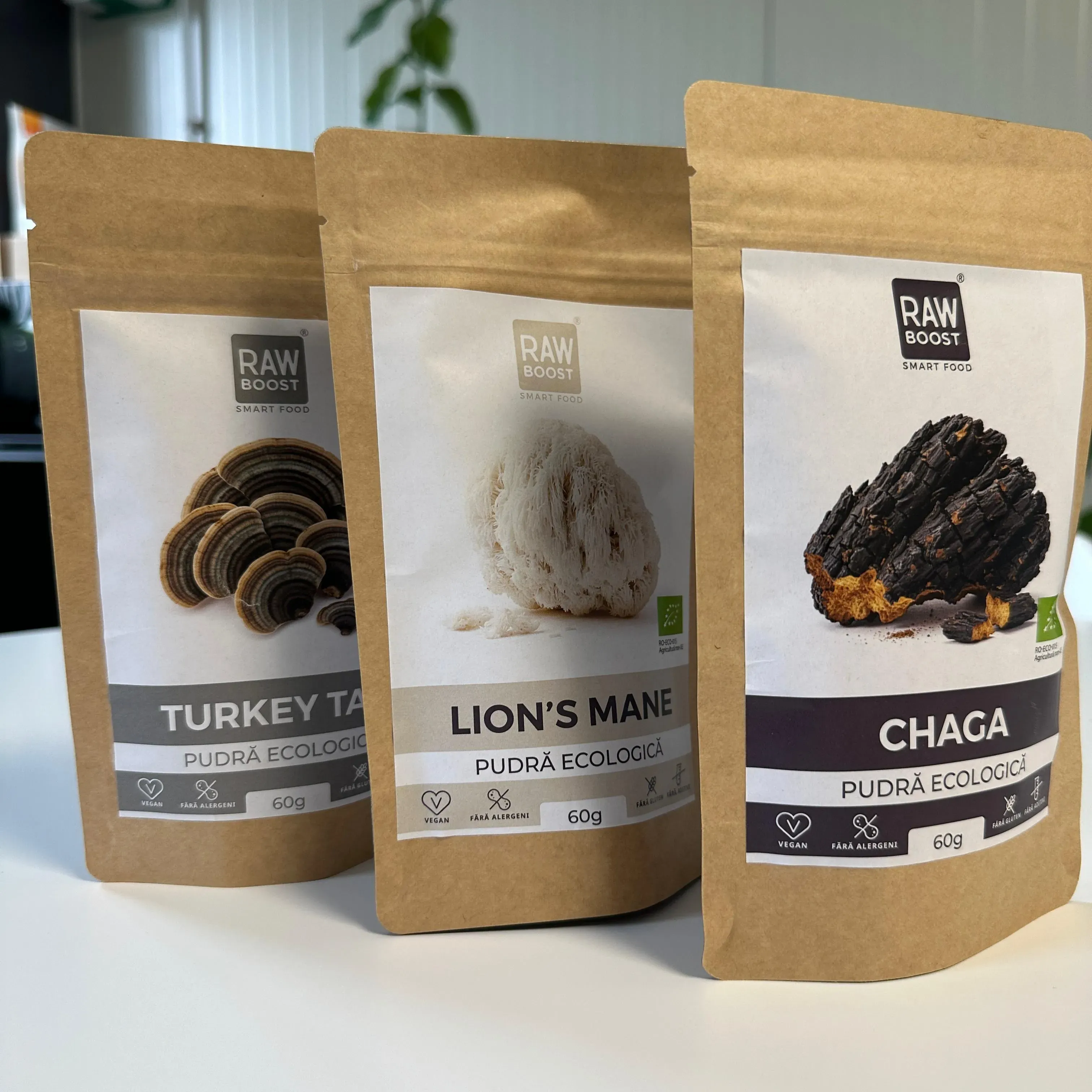 Acest pachet combină 3 ciuperci medicinale remarcabile, folosite de secole în medicina orientală pentru efectele lor asupra sistemului nervos, imunitar și antioxidant.