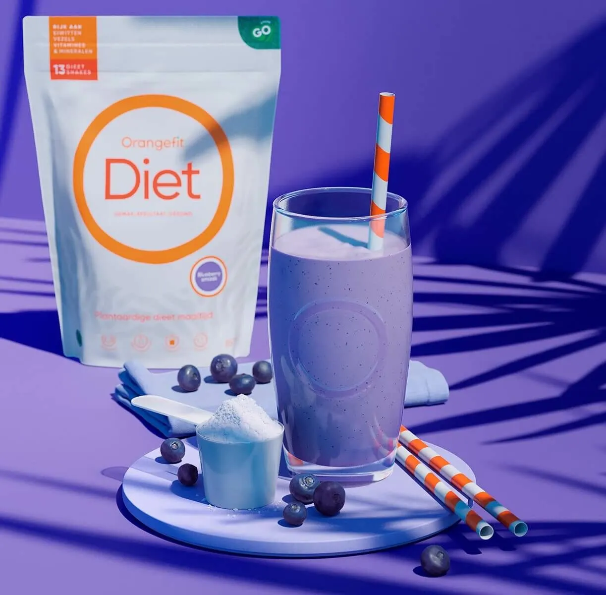 Combină Orangefit Diet cu aromă fină de afine – o masă lichidă cu nutrienți esențiali – cu In Pink, Colagen Booster!