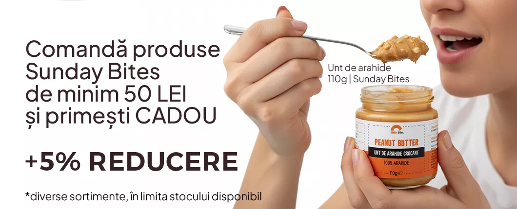 Descoperă sortimentele de unt de arahide, alune de pădure, migdale, caju, 100% naturale, de la Sunday bites! Fără zahăr, fără sare, fără conservanți, fără alte uleiuri ori grăsimi hidrogenate. Din nuci coapte și atât.